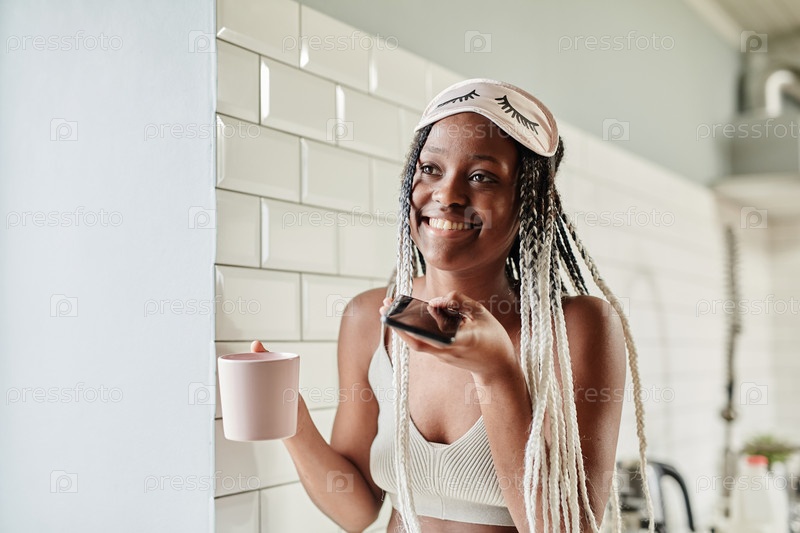Молодая женщина на кухне утром