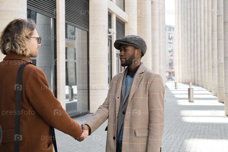 Бизнесмены, дающие рукопожатие на улице