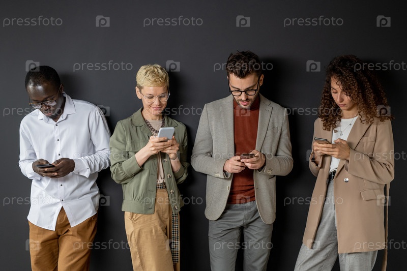 Группа молодых предпринимателей, использующих мобильные телефоны