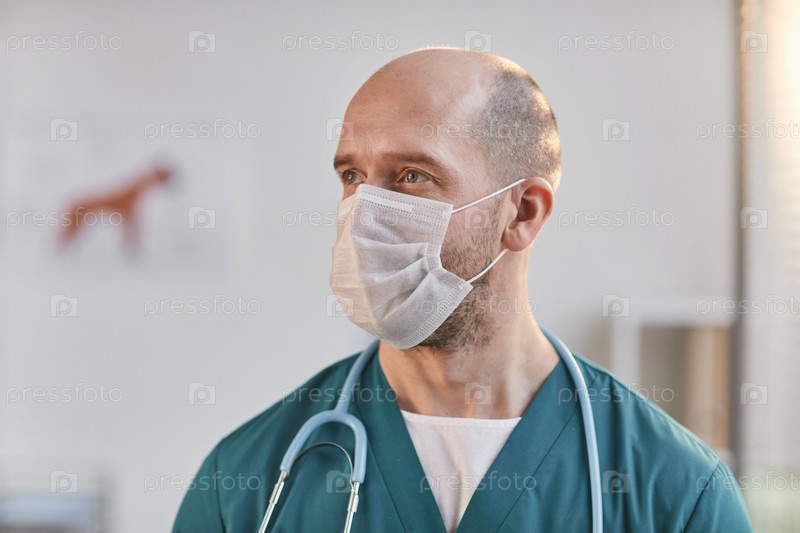 Ветеринар, носящий маску в клинике мужского ветеринара