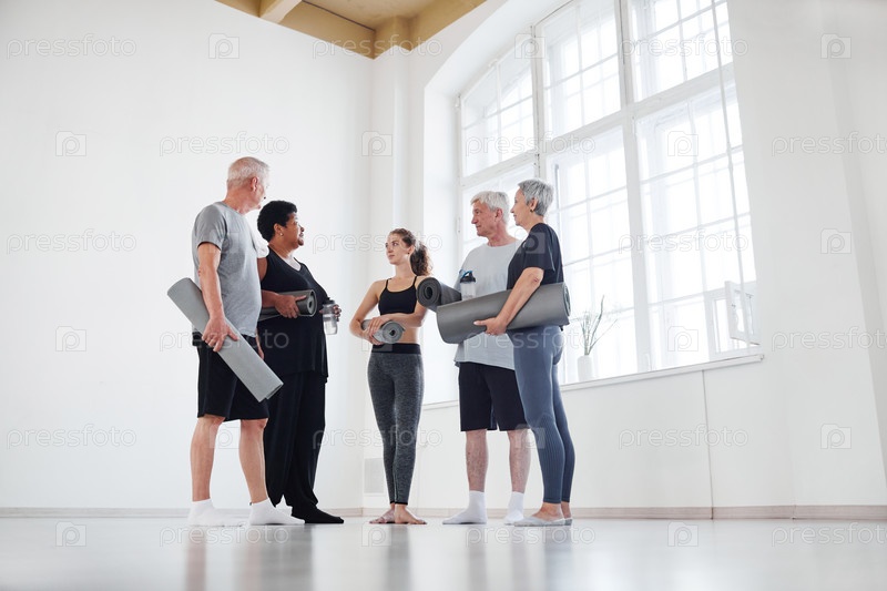 Люди обсуждают тренировки с тренером
