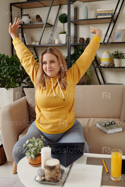 Улыбающаяся женщина растягивает спину