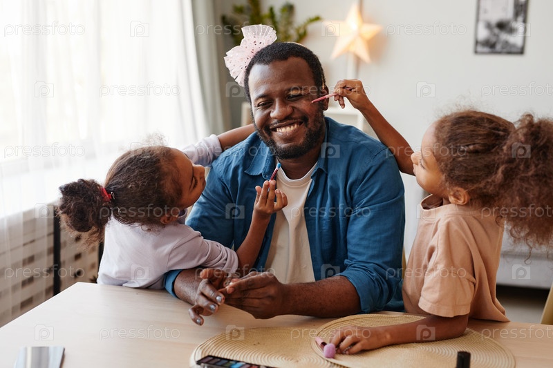 Играя в салон красоты с отцом девочек