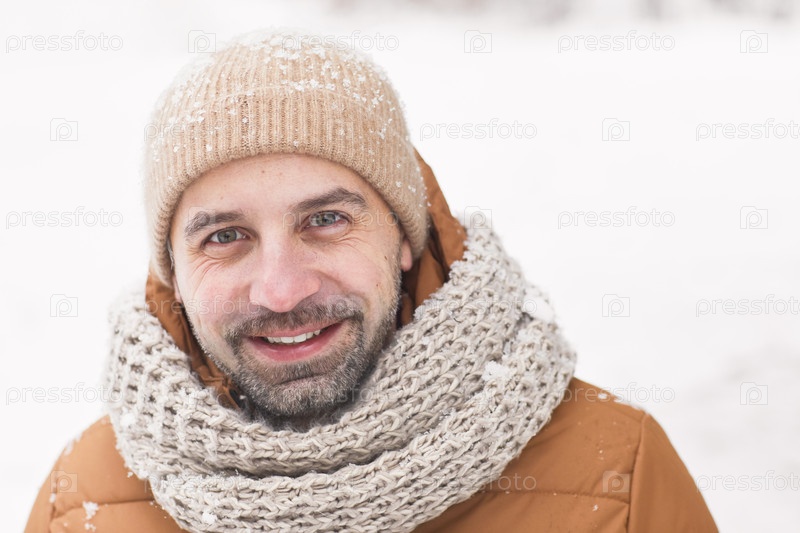 Улыбающийся зрелый мужчина наслаждается зимой
