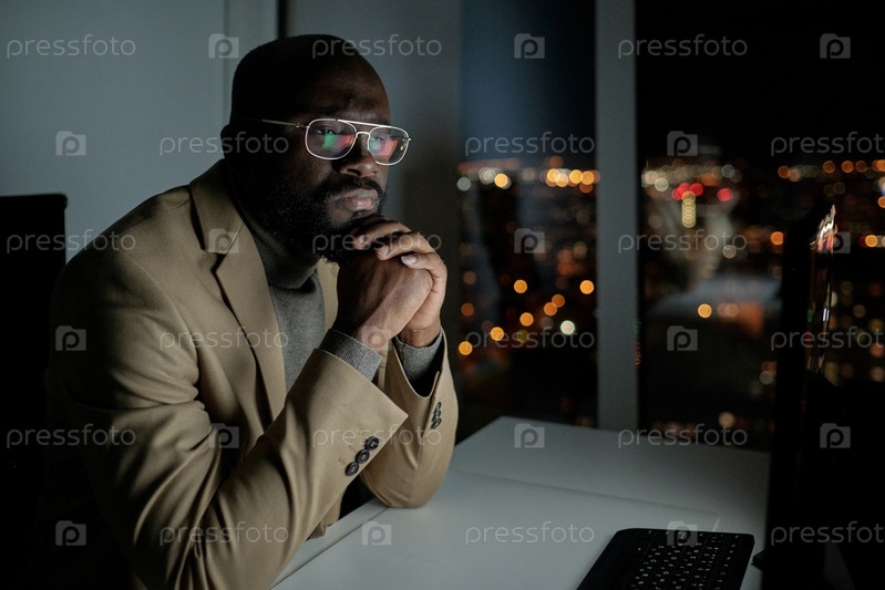 Серьезный бизнесмен в формальной одежде смотрит на компьютерный экран
