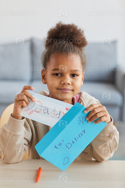Милая девочка делает ручной подарок для отца