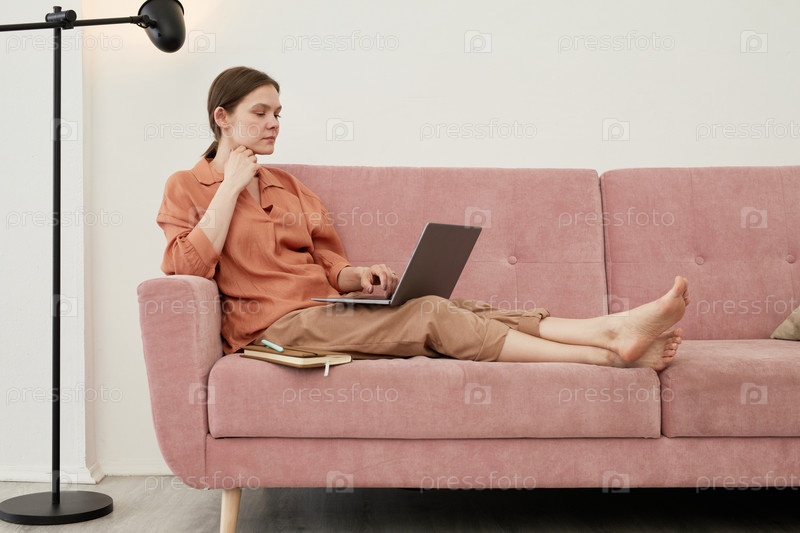 Деловая женщина, работающая на ноутбуке дома