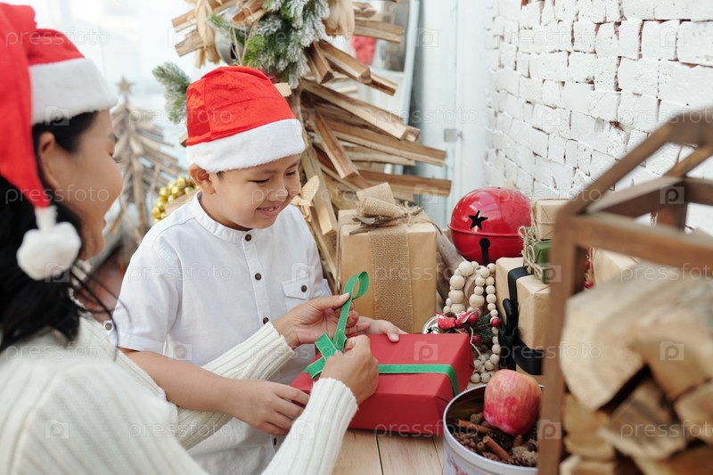 Наслаждайтесь обертыванием рождественских подарков для мальчика