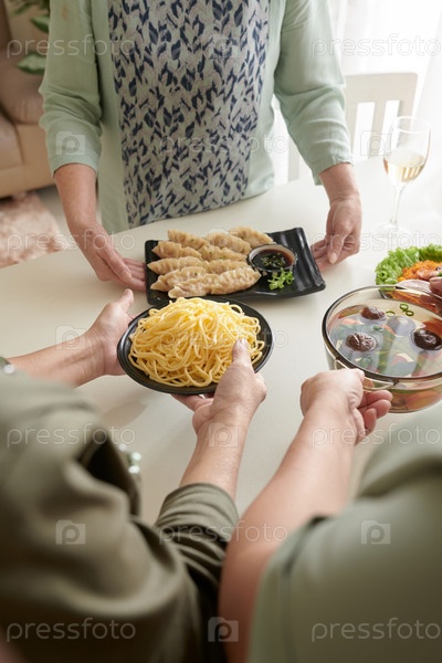 Женщины, которые ставят домашние блюда на стол