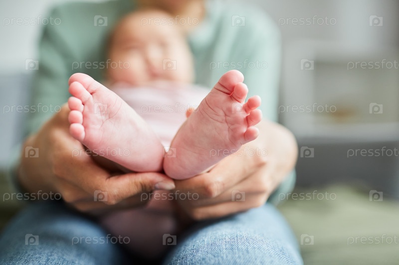 Мать держит ноги ребенка