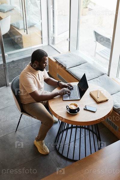 Черный мужчина работает в кафе