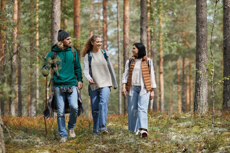 Молодые люди, путешествующие по лесу