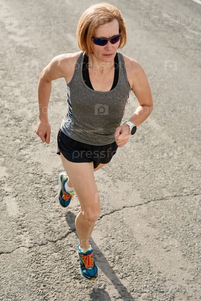 Женщина, бегущая по горной дороге летом