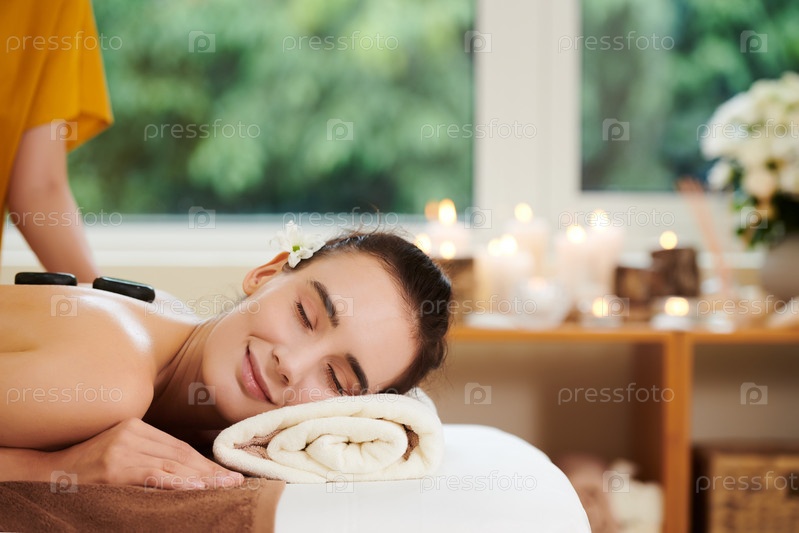 Женщина, расслабляющаяся камнями