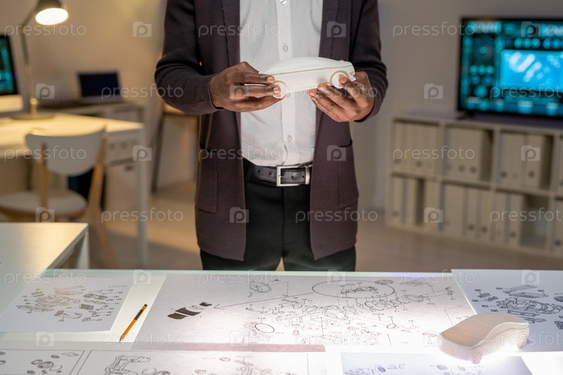 Черный дизайнер просматривает 3D-модель автомобиля