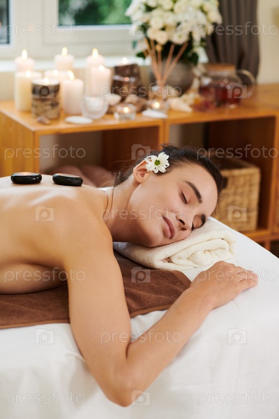 Женщина получает каменную терапию в салоне