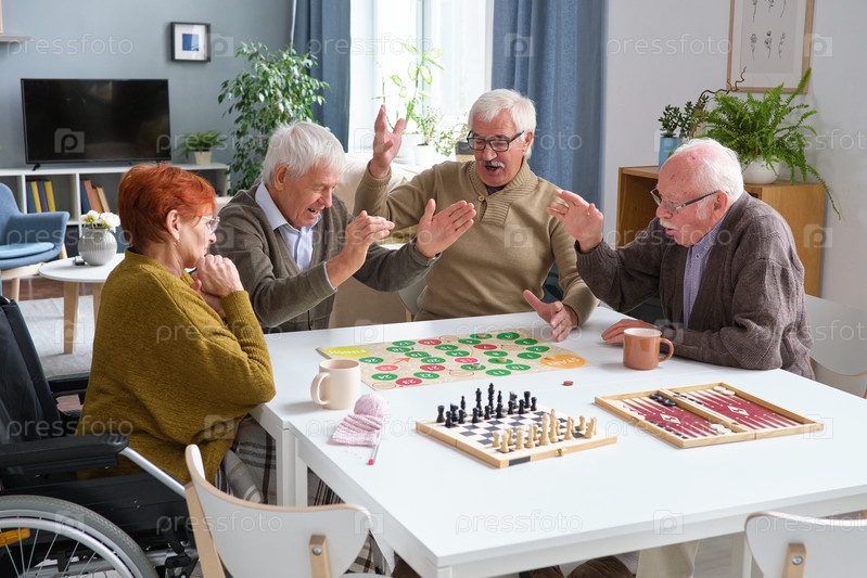 Старшие друзья играют в настольную игру вместе