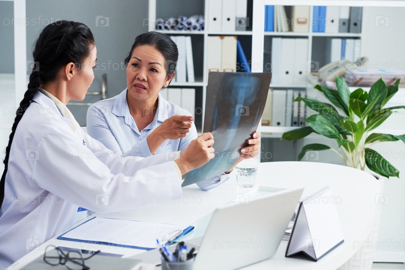 Пациент и врач обсуждают рентген грудной клетки