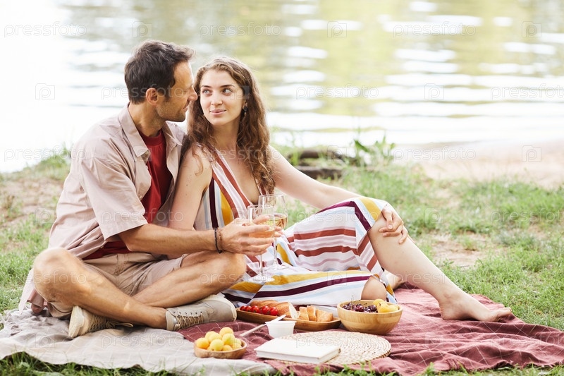 Молодая пара наслаждается романтическим пикником на открытом воздухе