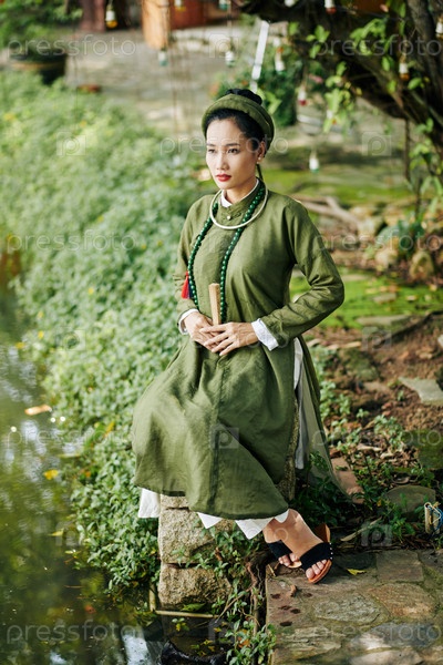 Пенсивная женщина в традиционном костюме