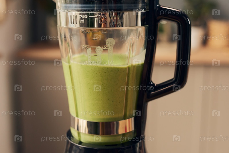 Часть пластикового бочка электрического блендера с зеленым смузи