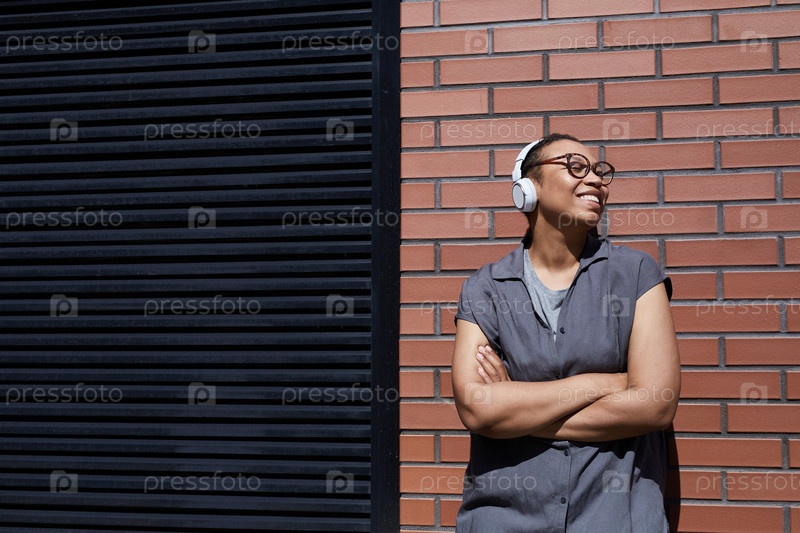 Счастливая женщина стоит на открытом воздухе