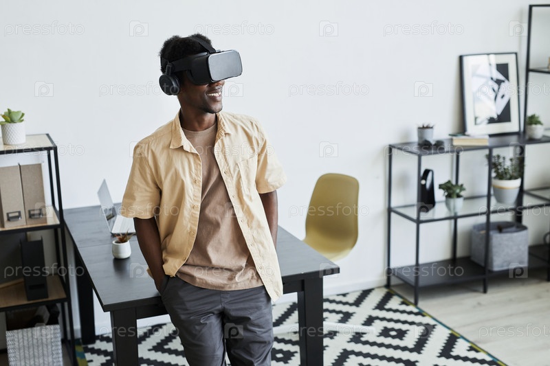 Бизнесмен в очках VR, работающий в офисе