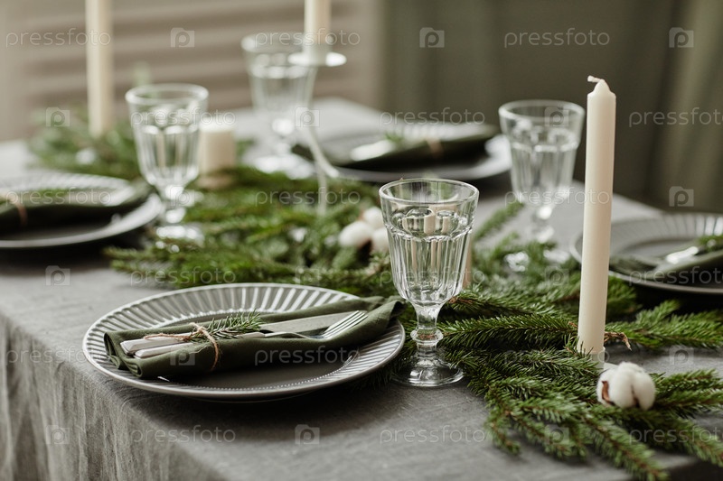 Рождественский обеденный стол в сером цвете