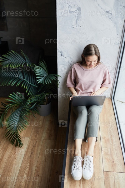 Женщина, работающая онлайн на ноутбуке