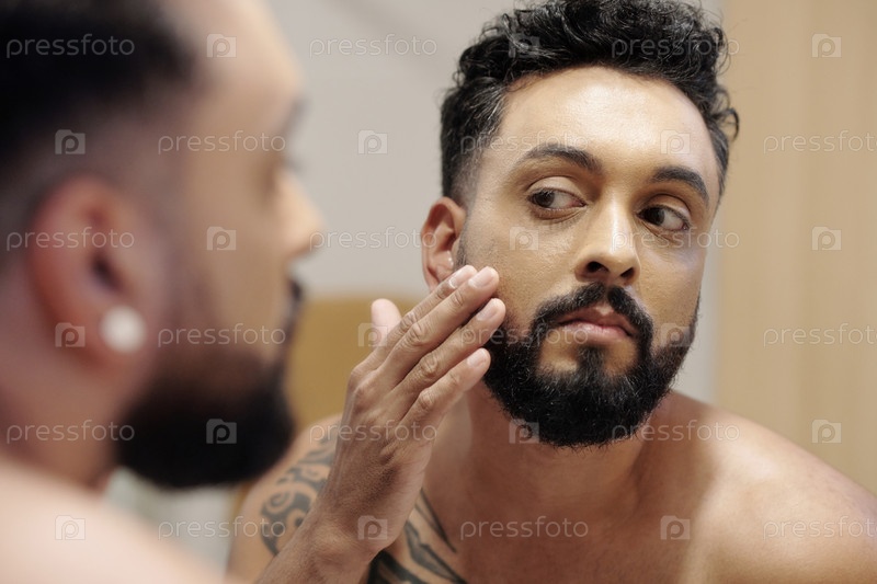Красивый мужчина наносит лосьон для лица