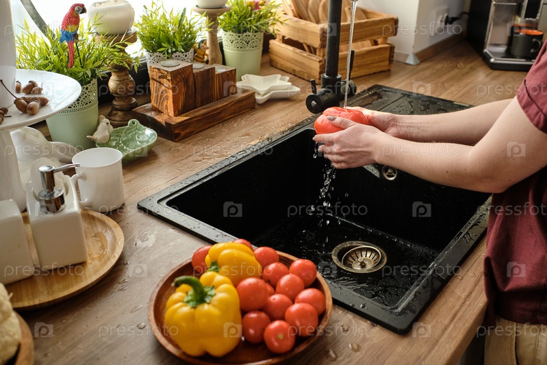 Руки молодой современной женщины, стирающей сырые овощи