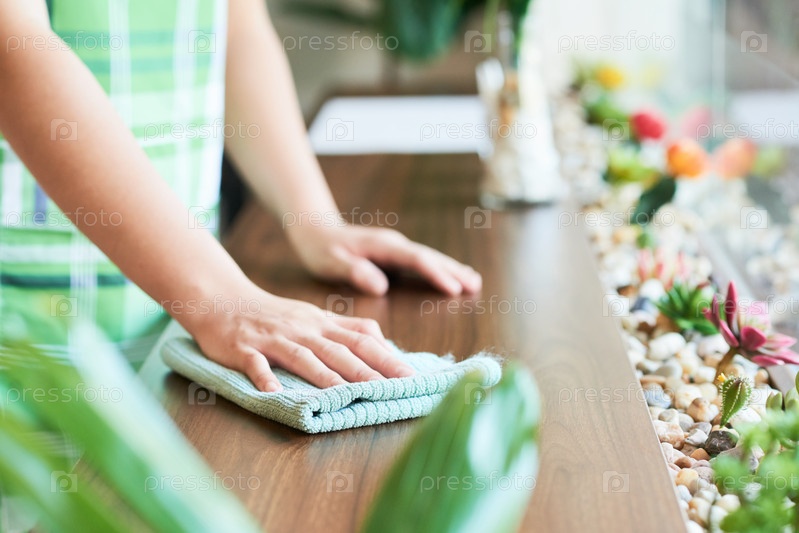 Женщина, стирающая поверхности в кафе