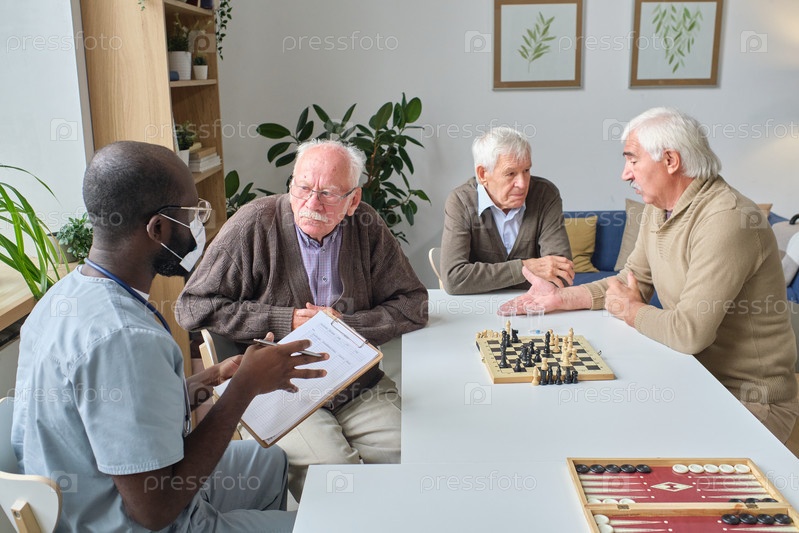 Доктор разговаривает со старшими людьми