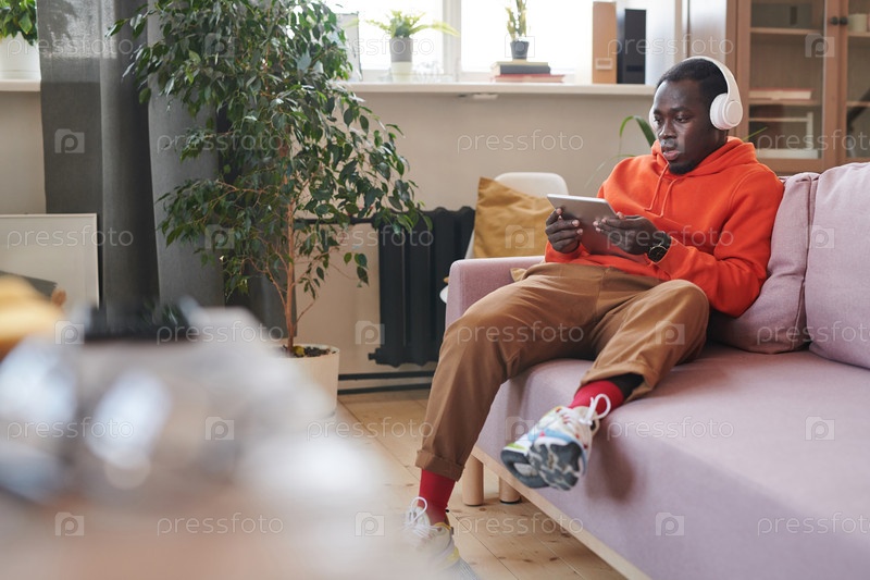 Стильный чернокожий студент серфирует по интернету