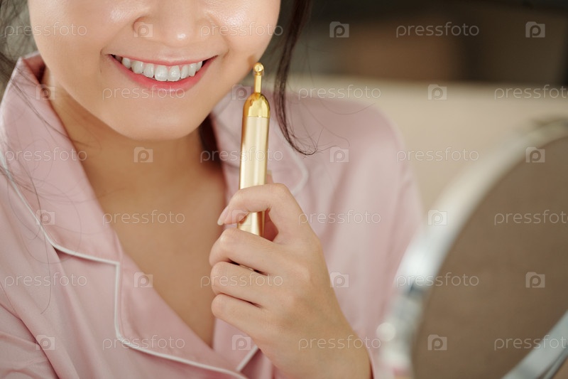 Красивая женщина, масажирующая щеки