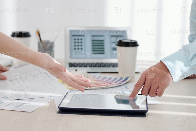 Деловые люди обсуждают данные на совещании