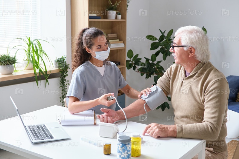Врач измеряет кровяное давление пациента