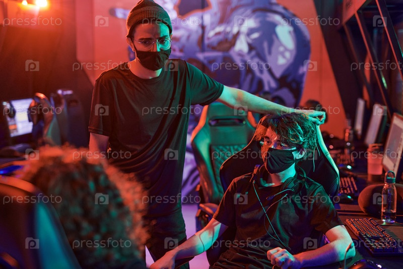Команда геймеров обсуждает стратегию перед турниром