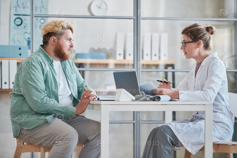 Мужчина разговаривает с врачом в кабинете
