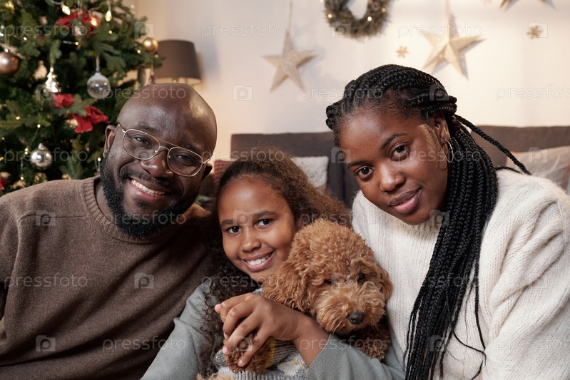 Молодая африканская пара и их дочь с милым питомцем