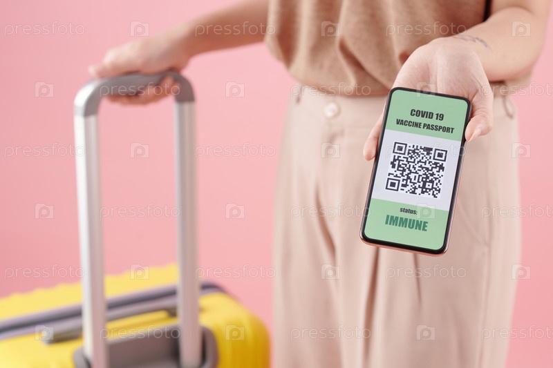 Путешественник, показывающий паспорт вакцины от коронавируса