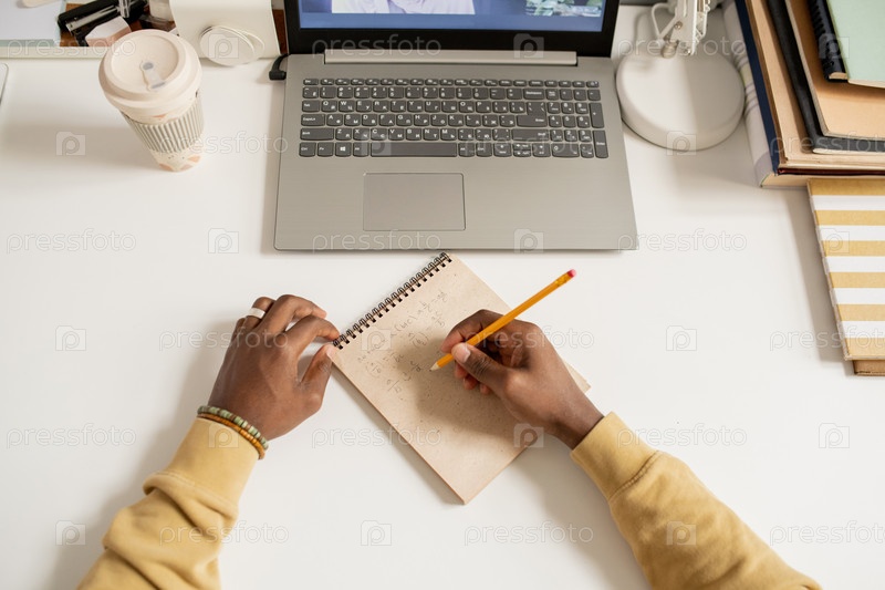 Руки молодого африканца, записывающего алгебраическую формулу