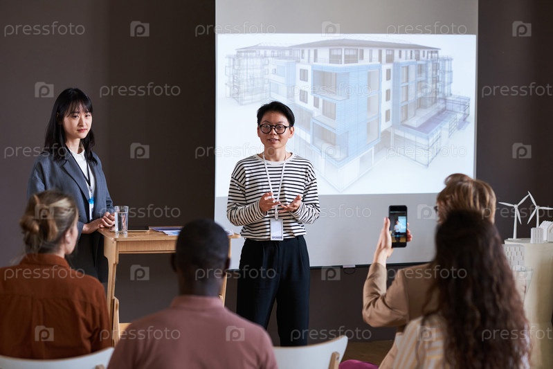 Деловая женщина проводит презентацию для деловых людей