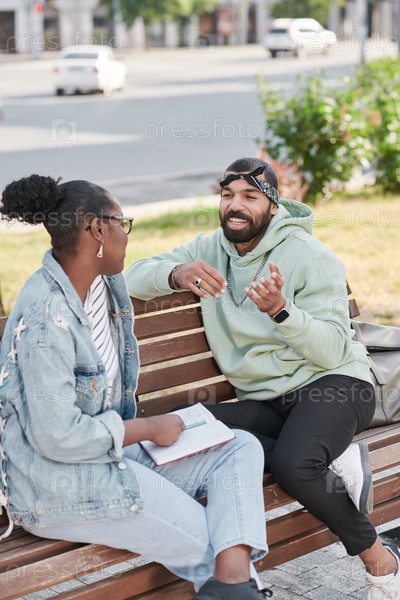 Друзья смеются, разговаривая на свежем воздухе