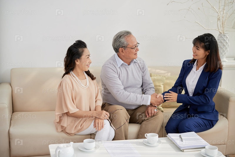Менеджер по недвижимости пожал руку старшим людям