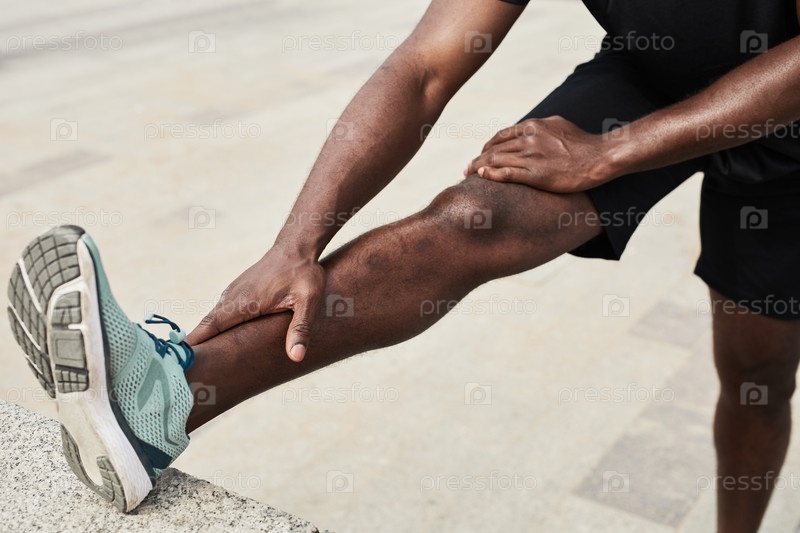 Мужчина делает растяжные упражнения на свежем воздухе