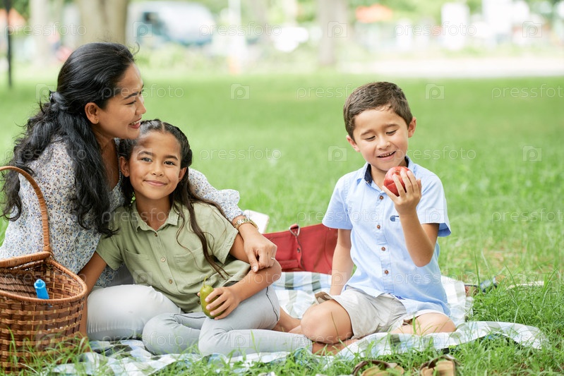 Семья сидит на пикнике