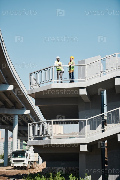 Мультиэтнические инженеры обсуждают строительный проект