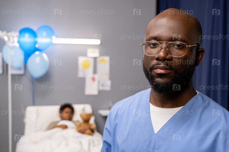 Африканский врач-мужчина лечит ребенка в больнице