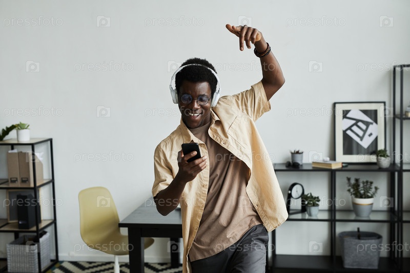 Мужчина танцует под музыку дома